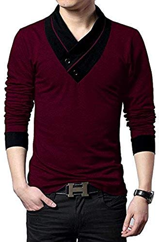 EYEBOGLER Solid Men's Shawl Collar Regular Fit T-Shirt