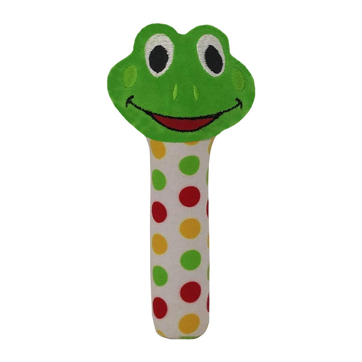 Pikipo Plush Froggy Face Rattle Cum Soft Toy with Squeeze Handle